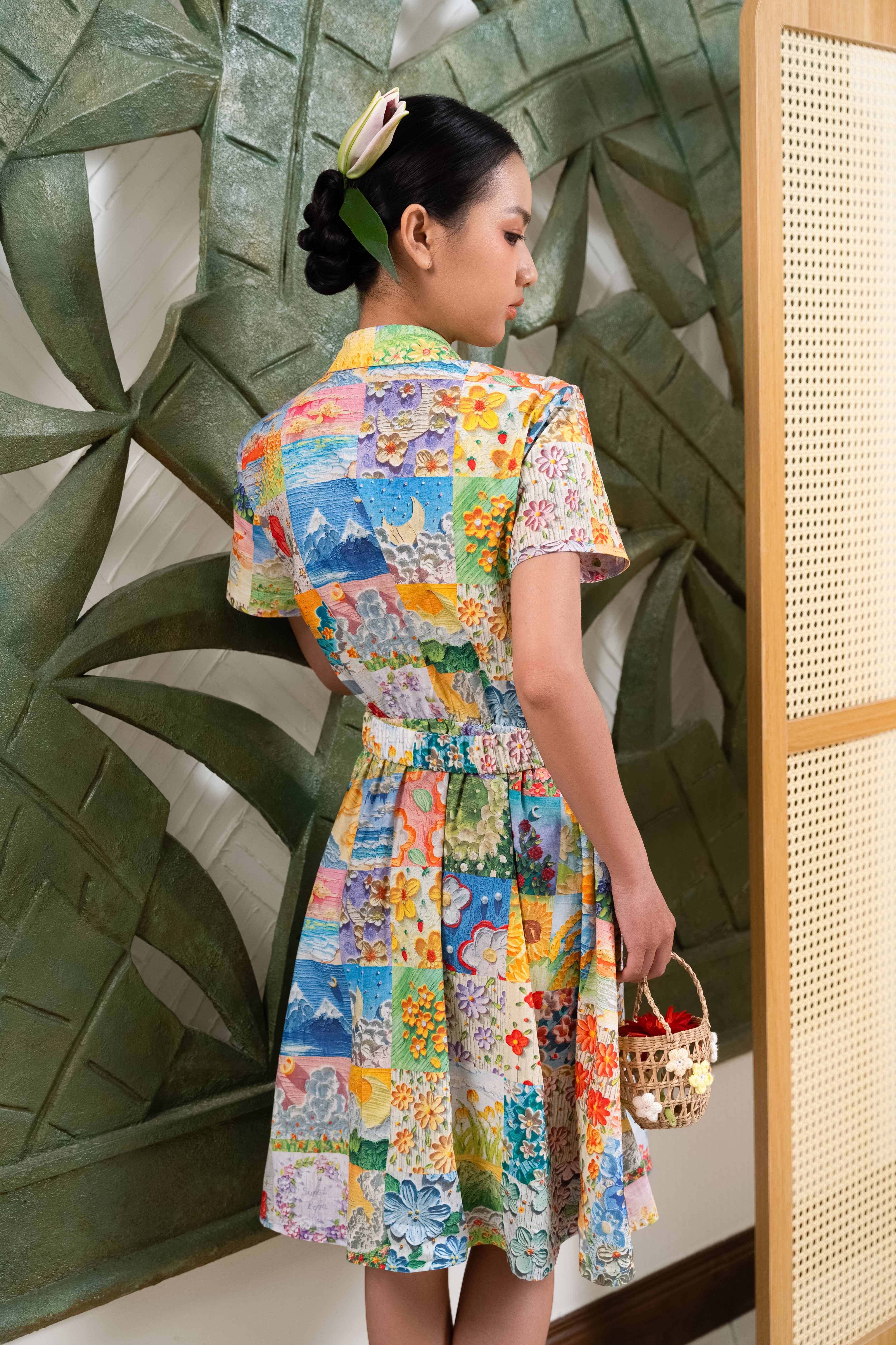 Let us know your measurements (bust, waist, hips, and height), and we’ll make it just right for you.Inspired by a blooming garden in full color, this shirt dress showcases vibrant floral patchwork on soft cotton poplin. A playful yet refined piece, perfect for adding artistic charm to everyday dressing.