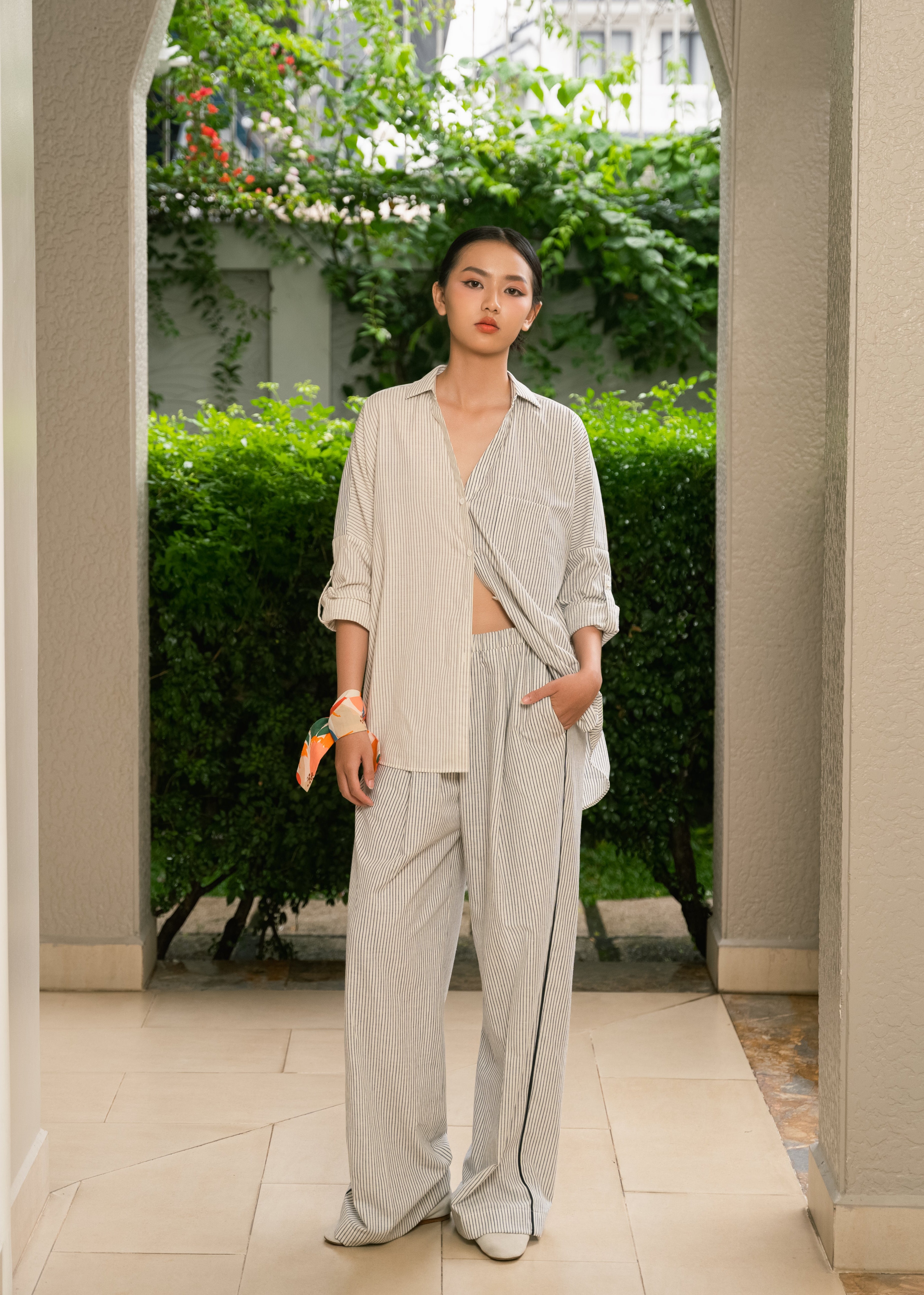 Let us know your measurements (bust, waist, hips, and height), and we’ll make it just right for you.A relaxed cotton shirt with fine vertical stripes, designed for effortless comfort and timeless everyday style.